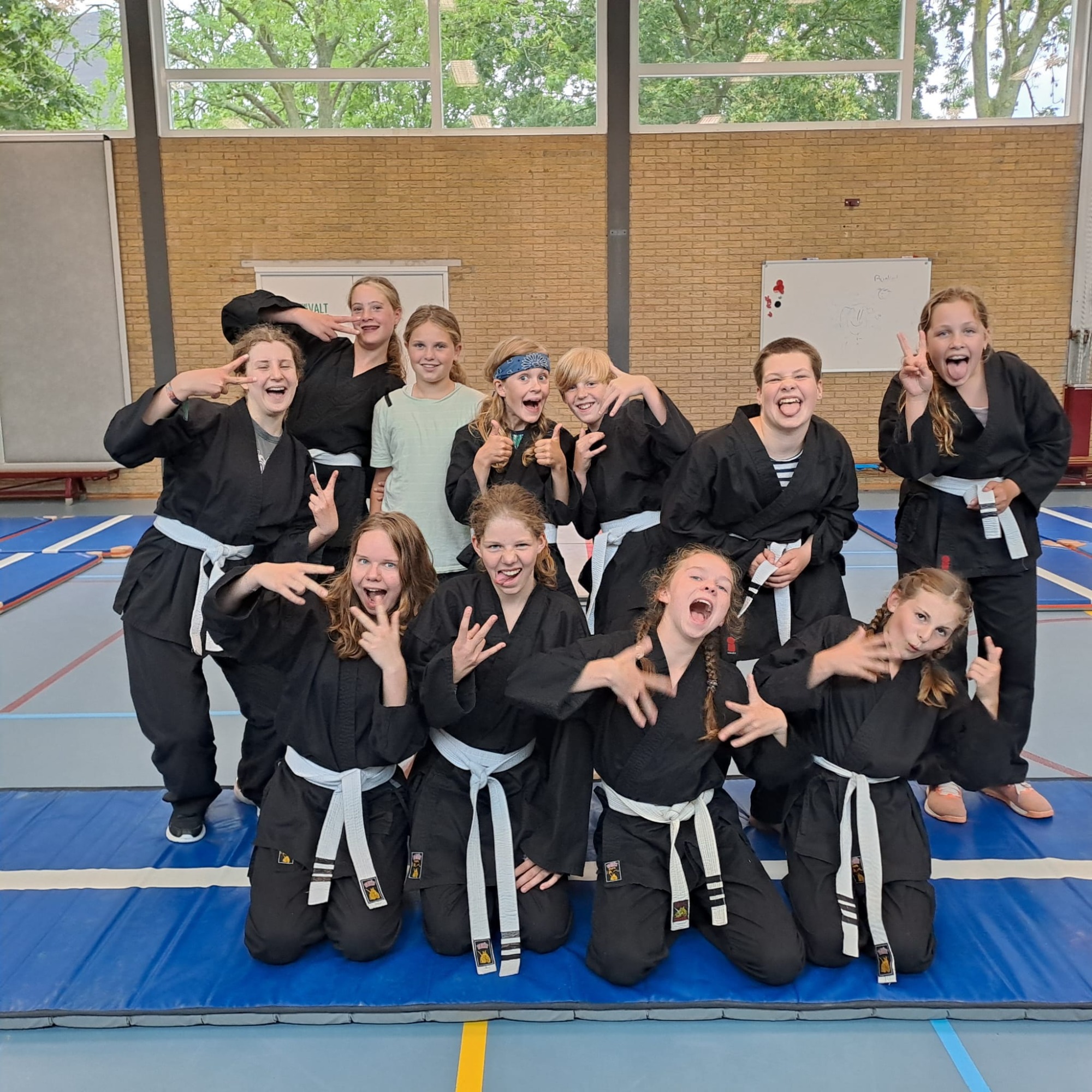We werken met een bandensysteem en strepen. Elk half jaar is er een examen en laat je zien wat je hebt geleerd. Iedereen start met een witte band.